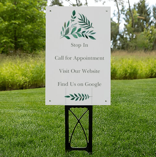 Marketing Materials from Vista Print : Chalk Board Sign, Magnetic Business Cards, 4″x8: Rack Cards, Brochure Holder, 2.5’x4′ Vinyl Banner with Grommets and Reinforced Sides, 8′ Limited Print 4 Side Table Cloth, Table Clamps, and (2) 12″x24″ Car Magnets